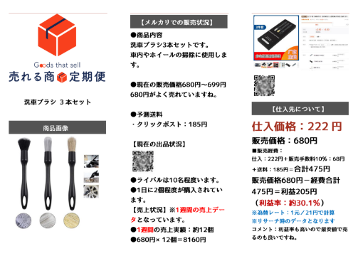 これまで自分なりにリサーチをし販売してきましたが、定期便では自分が知らなかった種類の商品が届き新たな発見がありました。