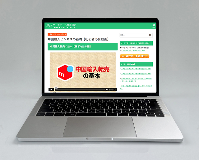 メルカリでの売り方から、リピート販売時の「中国への発注方法」まで、専用サポートサイトで【動画付き】で解説をします。